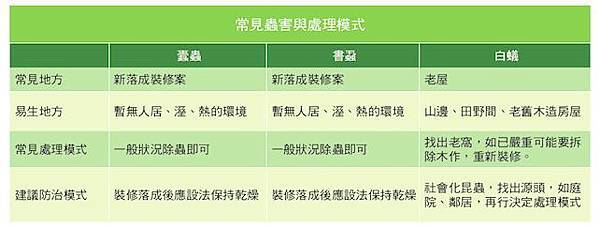 在解決蟲蟲危機之前,消費者還是應該要有心理準備,如果比較介意甲醛對健康的危害,應該要與設計師共同謀求一個共同可以接受的做法,也或許要接受可能會產生蠹蟲的結果。反之,就要考慮挑選比較能夠防蟲的建材。